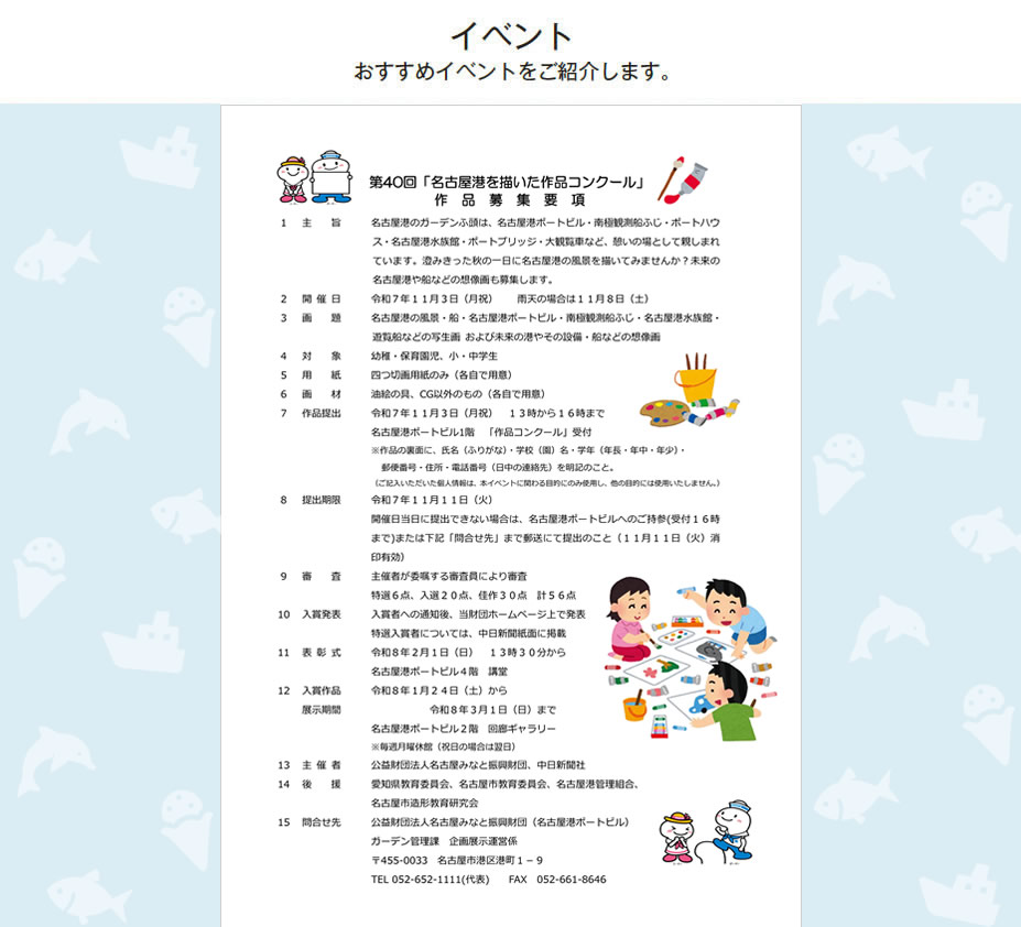 優秀な作品は令和8年2月1日(日) 午後1時30分から名古屋港ポートビルにて表彰式を行います。 詳しくは こちら