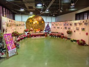 フラワー・ブラボーコンクール学校花壇の部でえびせんべいの里賞に選ばれた学校の写真パネル展を開催中です。