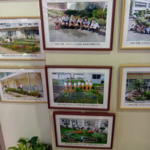 フラワー・ブラボーコンクール学校花壇の部でえびせんべいの里賞に選ばれた学校の写真パネル展を開催中です。
